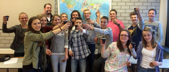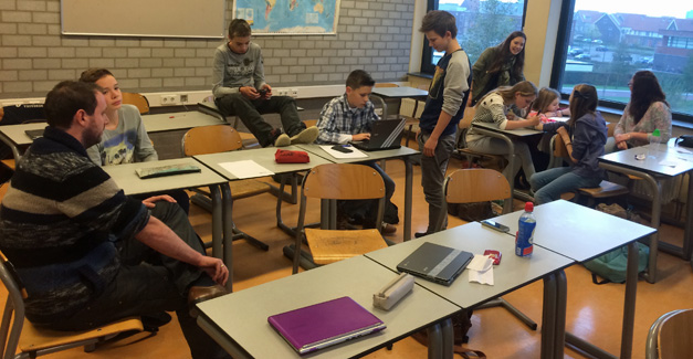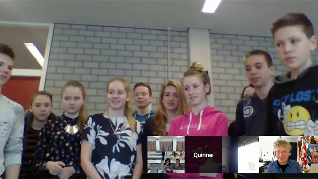We hebben op 3 maart voor de eerste keer echt contact gehad met de leerlingen uit Taiwan. Het was aan het begin wel een beetje raar, want we wisten allemaal niet echt wat we moesten zeggen. We gingen om ste beurt onszelf voorstellen en daarna gingen de leerlingen en leraren in Taiwan zich om ste beurt voor stellen. We hadden niet echt goede apparatuur om te gaan skypen. In Taiwan hadden ze een camera en een aparte microfoon, waar ze mee skypte. Wij hadden alleen een klein laptopje waar we met zijn allen achter stonden.