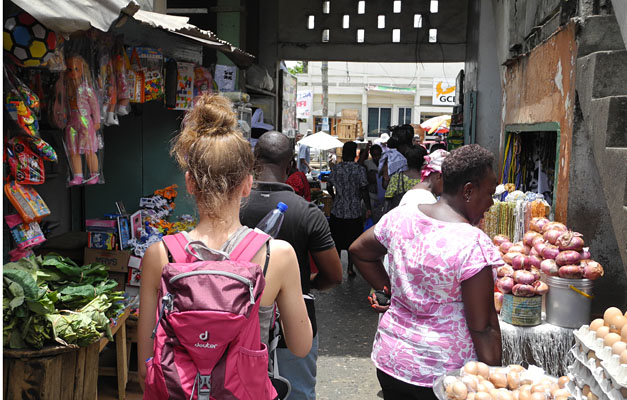 10:00 Een bezoek aan de Bisschop met aansluitend een bezoek aan de markt in Takoradi . Ook bezoek aan supermarkt en mogelijkheid tot wisselen van geld.