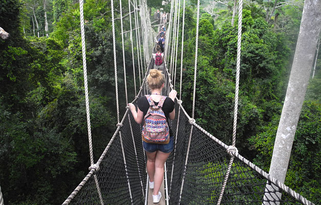 Daarna naar Kakumpark (een regenwoud met touwladders en bruggen tussen de enorme hoge bomen. Stevige schoenen vereist. Daarna terug naar huis.