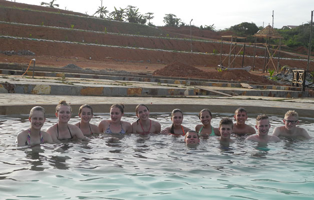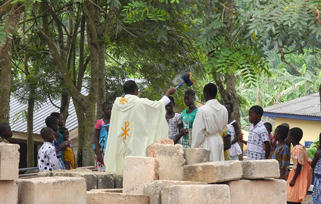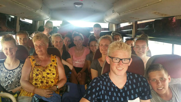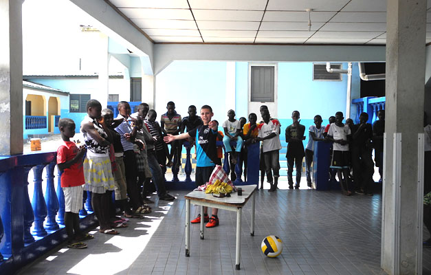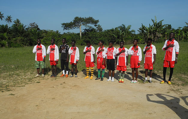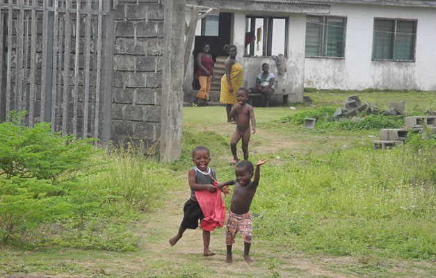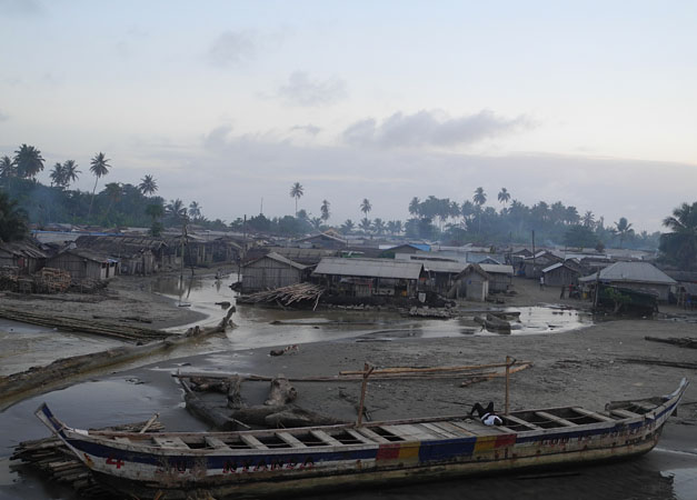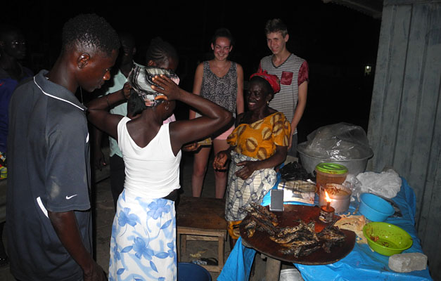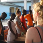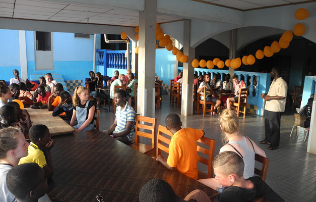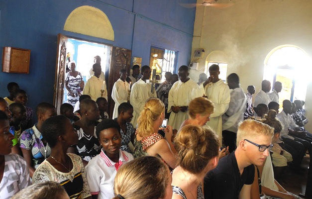 09:30 Kerkdienst in de dorpskerk van Egyam. Daarna in de bus richting Axim Beach Resort