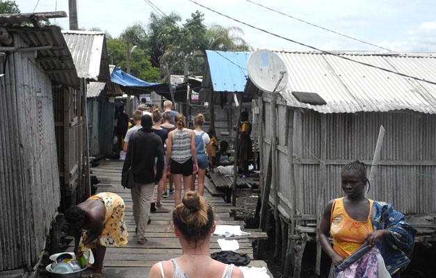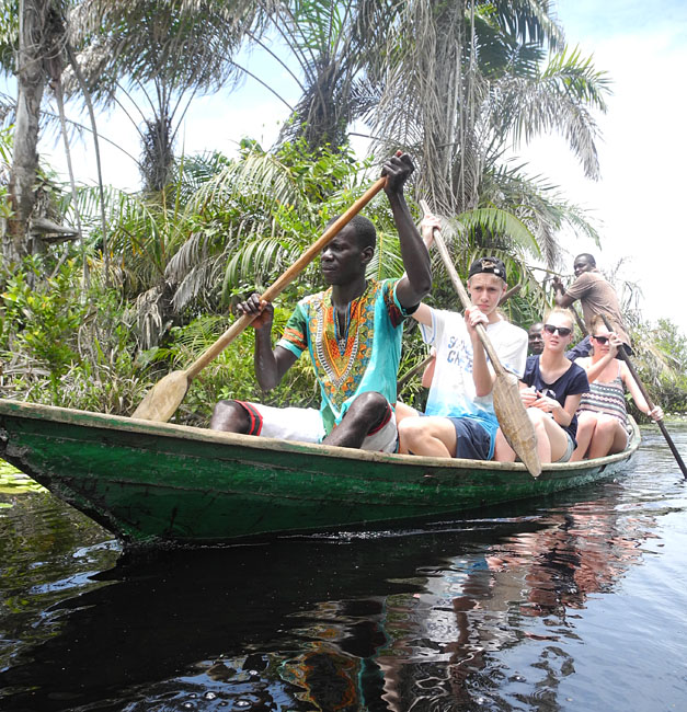 Dagtrip naar het primitieve dorpje Nzulezu : dorp op palen die enkel per kano door het oerwoud bereikt kan worden.