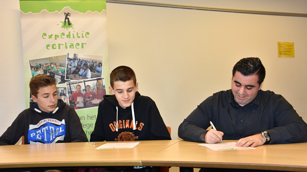 Met de ondertekening van de expeditie-plannen door Arend Smit (schoolleider), Caroline Heutink (projectbegeleider), de leerlingen en de coaches van de Expeditieteams, is de goedkeuring van ons plan een feit!